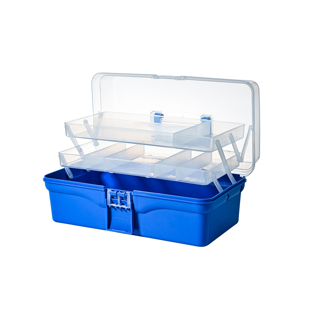 BangQiao 2-Tier Trays Clear Blue Plastic Storage Container Organizer Box, Multipurpose Portable Carrying Case with Latch Lock and Handle for Art, Craf