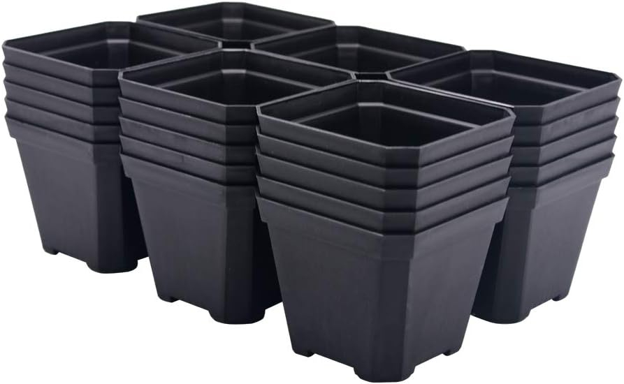 BangQiao 30 Pack Small 3.90 Inch Plastic Square Nursery and Seedling Pot Container, Seed Starting Transplant Planter with Drain Hole for Germination,