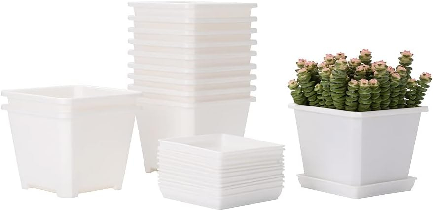 BangQiao 12 Pack 4.60 Inch Plastic Square Nursery and Seedling Pot Planter Container with Plant Saucer Drip Tray for Succulent, Cutting, Transplanting