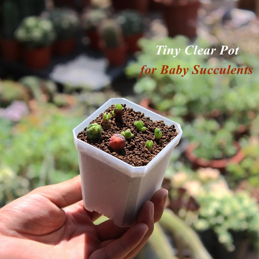 Package includes 120pcs clear small square plastic plant pots, both available for indoor and outdoor application. Pot size in 2.70”W x 3.10”H, ** no saucers and plants included **