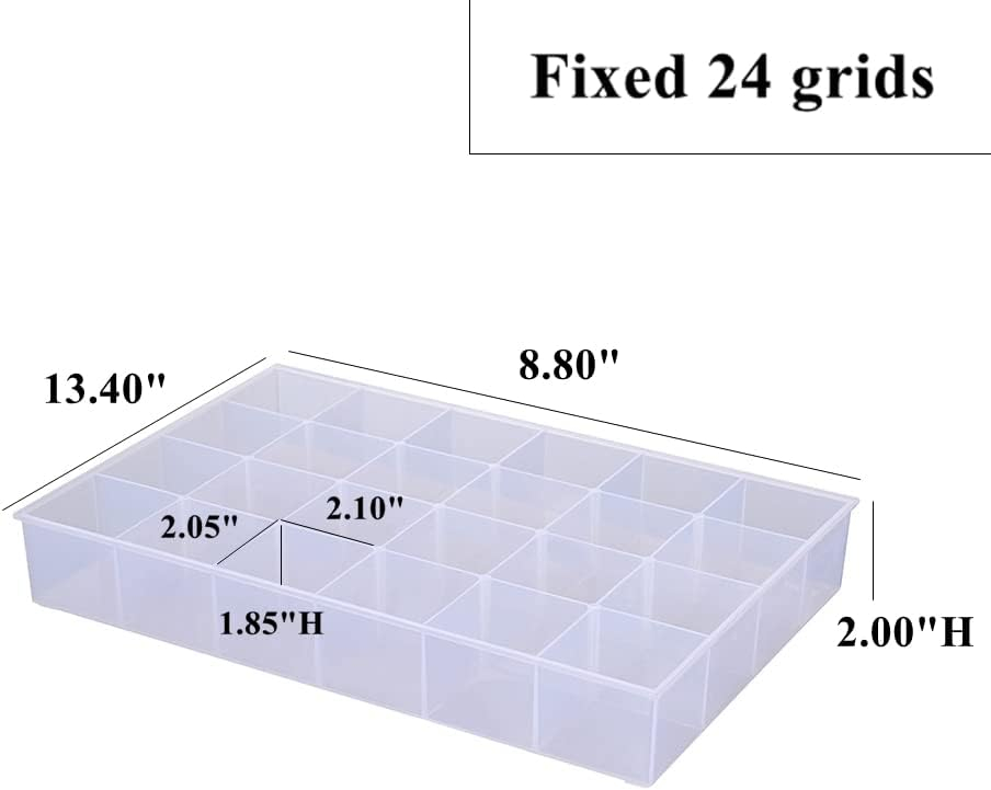 Total 24 fixed grids are enough to keep more small pieces in one place, help you to sort and store more items and accessories. Approx individual slot size in 2.10"L x 2.05"W x 1.85"H