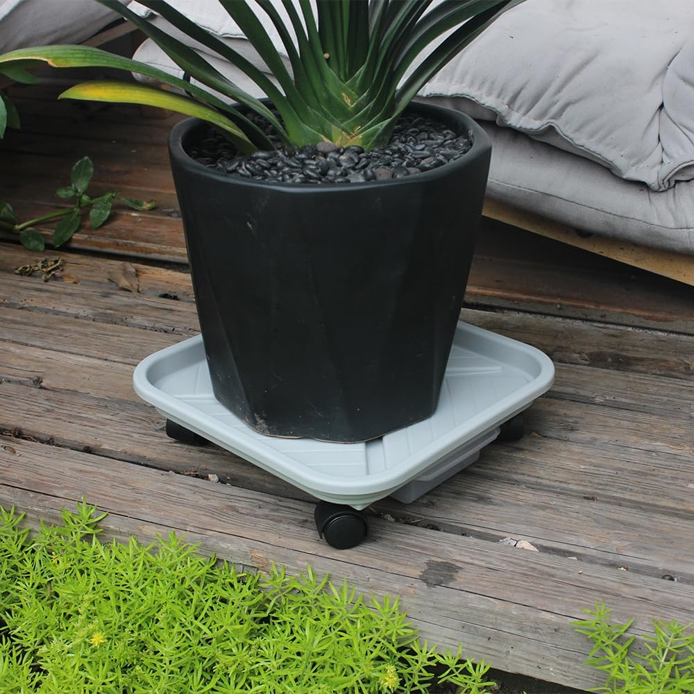 Made of durable plastic material. With round corner design, the understated gray look makes it adaptable to any occasion. Whole square caddy platform has solid support ribs molded into the underside to load heavy plant up to 100 LB