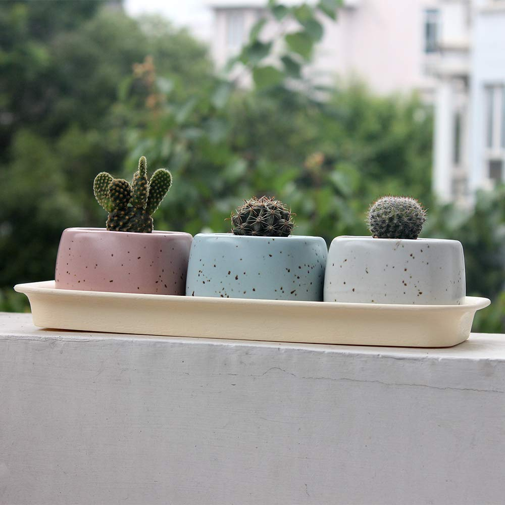 Package includes 3 pcs plastic rectangular pot tray, beige color