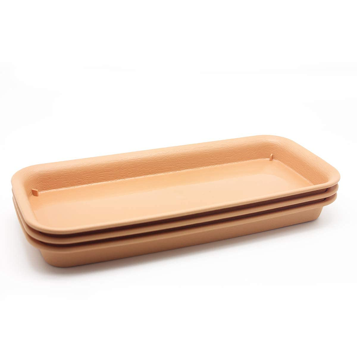 Package includes 3 pcs plastic rectangular pot tray, terracotta color
